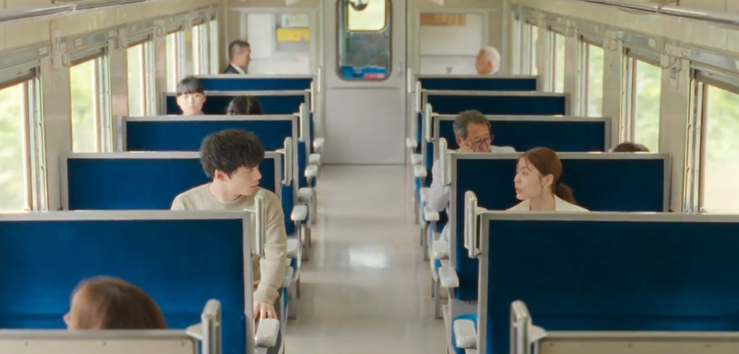 Con la presencia de esas casualidades extrañes, pero no tanto, Naruse y Saeko se conocen en un día común de trabajo mientras ambos viajan en un tren de asientos azules; cuando sufre un desperfecto, el maquinista se ve obligado a pedirles una espera de un par de horas a los pasajeros y, para amortiguar la impaciencia, Naruse decide hacer café.
