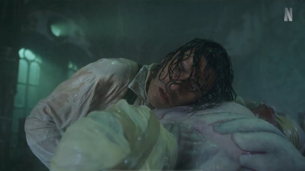 Me explico. Uno de los temas centrales de la novela es la maternidad —entendida desde múltiples ángulos— y el otro es la dicotomía moral que remite directamente al Paradise Lost de Milton. Ambos hilos quedan prácticamente desvanecidos en esta nueva versión. La película termina quedándose corta en profundidad temática y se acomoda dentro del marco de lo mainstream: una producción de Netflix pensada para ser vista por un público amplio. Esto no es necesariamente negativo; de hecho, permitirá que muchas personas regresen —o conozcan— al libro. Pero, claro, se llevarán una sorpresa al descubrir que allí no hay romance ni insinuación de tal, que de hecho la única vez que Elizabeth ve a la criatura es la noche de su boda, cuando la estranguló hasta matarla; que el padre de Victor no es un villano; que la madre de Victor educó a Elizabeth para convertirla en la esposa perfecta para su hijo, asegurando esa complicidad silenciosa que atraviesa toda la obra.